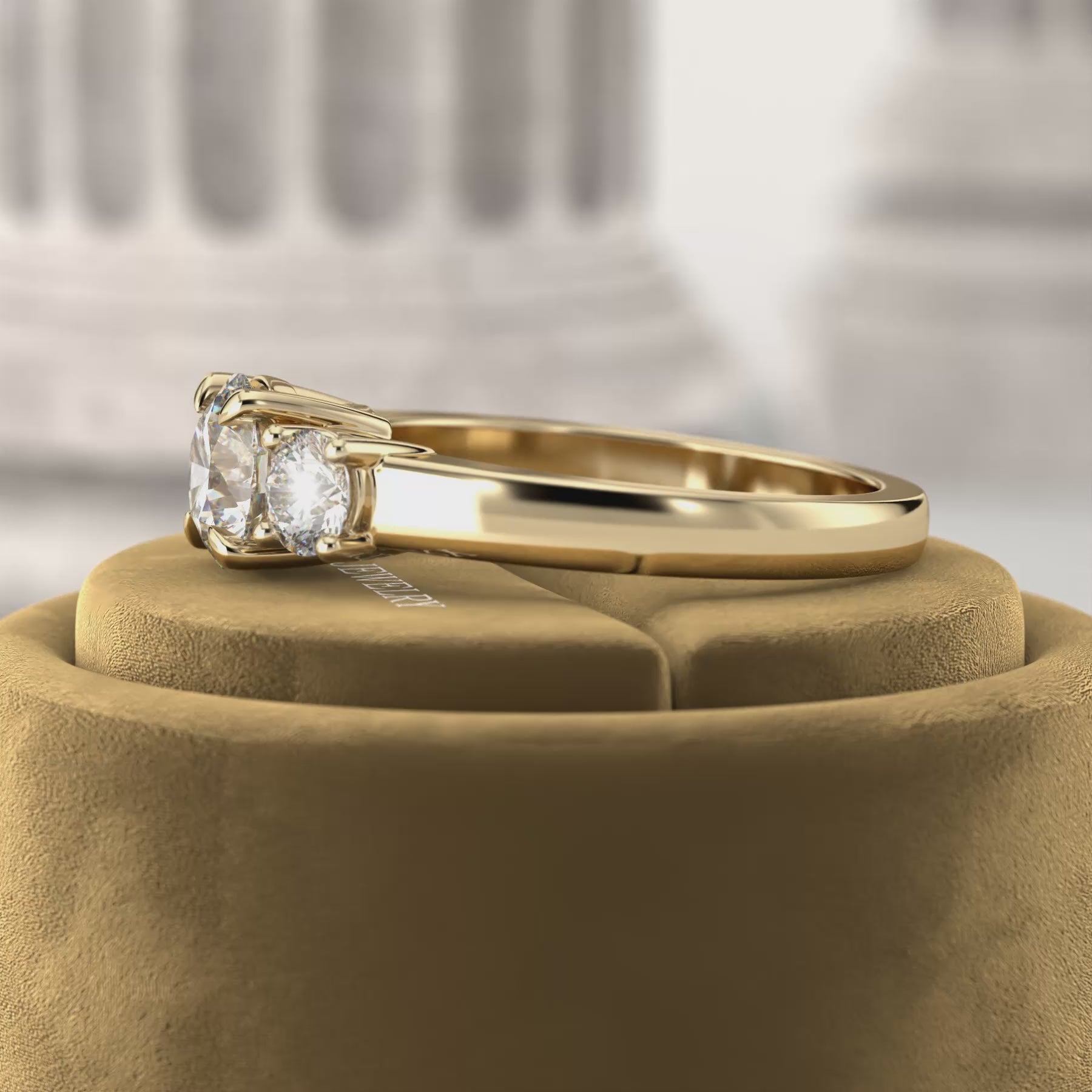 A graceful trio of lab-grown diamonds creates a captivating narrative in this refined design. The centerpiece is complemented by two smaller stones, forming a seamless composition of symmetry and sparkle. Clean lines and a sculpted silhouette elevate its timeless charm with a hint of modernity, ideal for those drawn to understated beauty with meaningful detail.