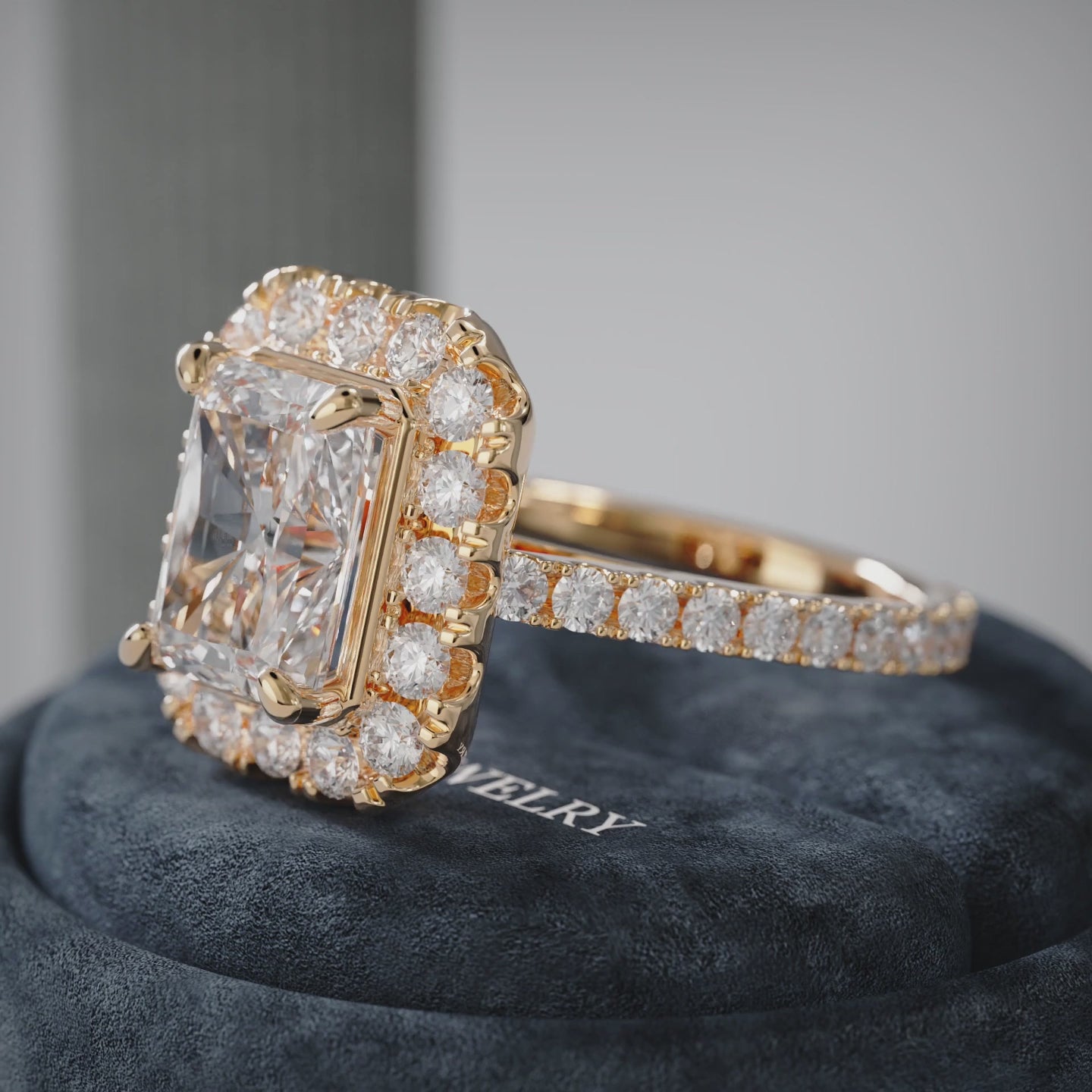 Célaris Halo & Pave Radiant Lab Diamond Ring