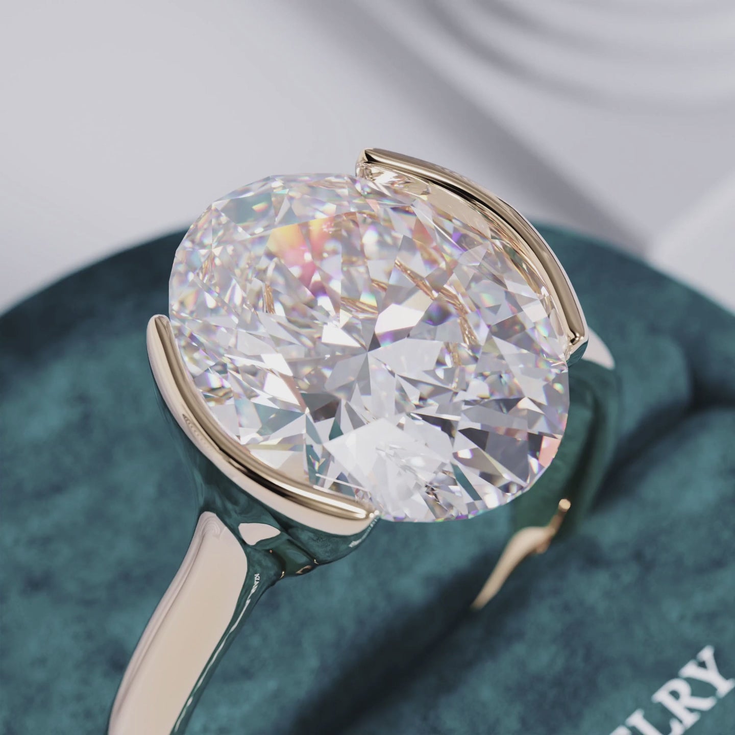 A captivating oval lab diamond set in a sleek wrap-style design, this ring blends bold minimalism with modern elegance. Its sculptural form highlights the brilliance of the center stone, creating a fluid silhouette that feels both architectural and romantic. A perfect statement piece for the design-forward bride.