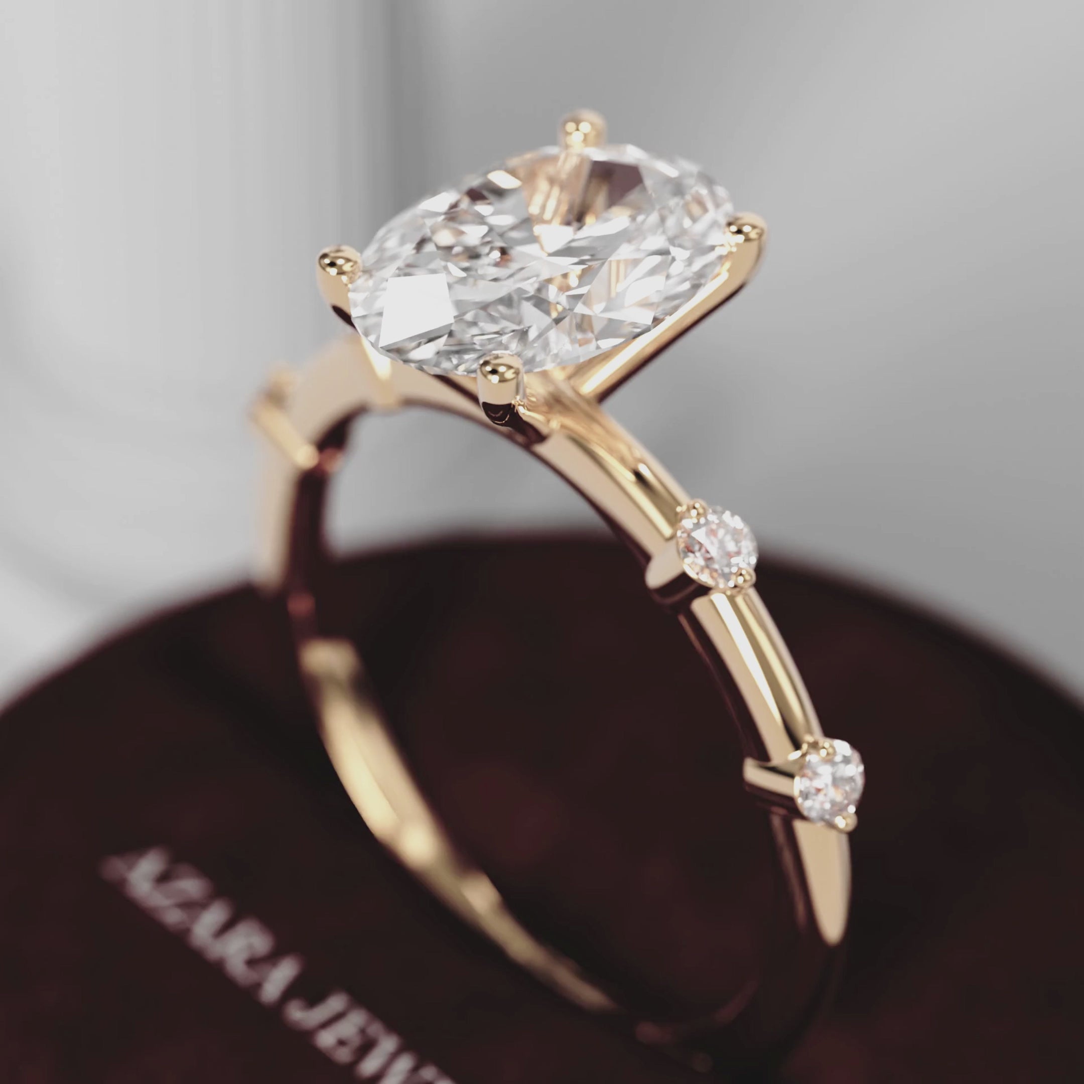 A modern ode to simplicity and sparkle. This oval cut lab grown diamond ring is elevated by delicately spaced round accents along the band, creating a graceful rhythm of brilliance and airiness. A refined setting that feels effortless yet eye-catching from every angle. Perfect for those who appreciate understated elegance with a unique twist.
