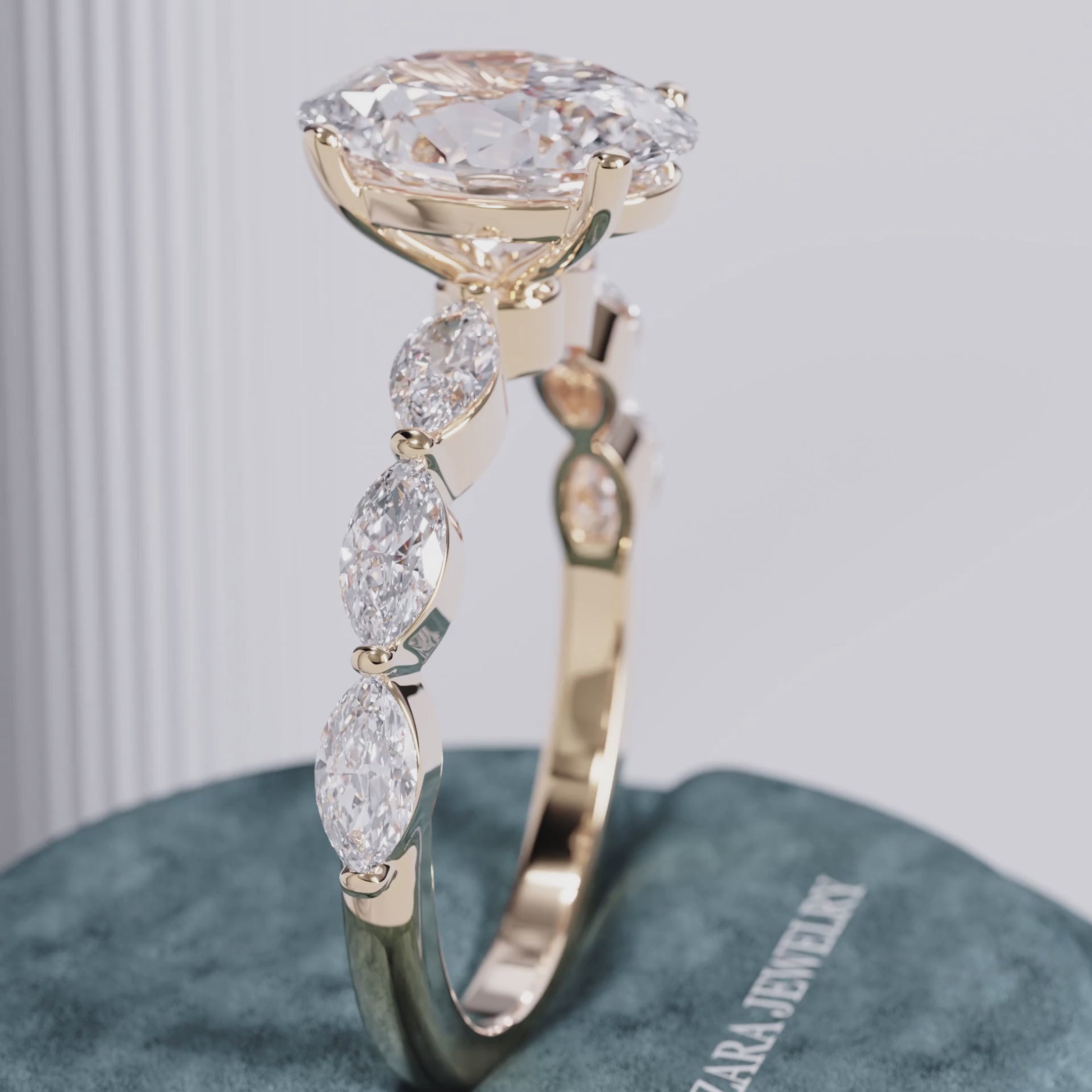 This elegant ring features a 2-carat center diamond surrounded by 0.5 carats of side stones, creating brilliant sparkle and dimension. A perfect blend of timeless beauty and modern style, crafted for unforgettable moments.